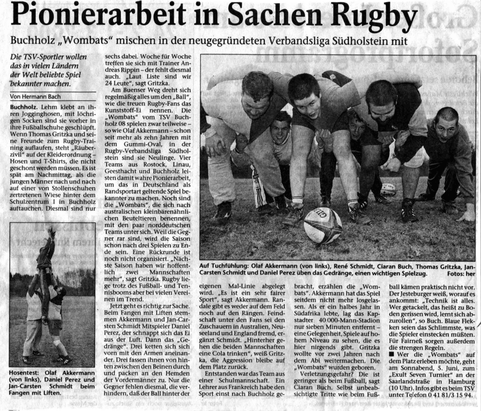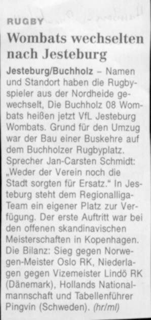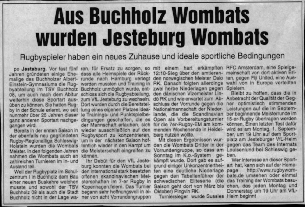 Die Wombats, nun unter der Flagge des Hamburger Rugby Verbands, zeigten sich in der Folge erkenntlich, indem sie mit respektablen Erfolgen den Namen des kleinen Heideortes auf der nationalen wie auch internationalen Rugbylandkarte bekannt machten.