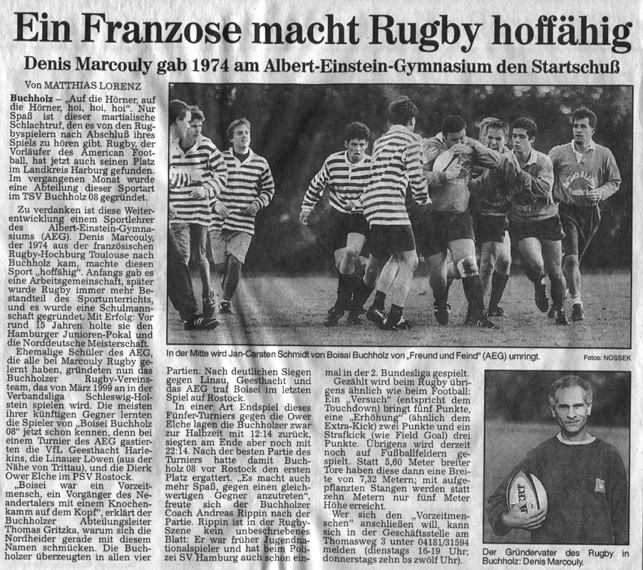 1998 gründeten ehemalige und aktive Schüler des Albert-Einstein-Gymnasiums Buchholz um Thomas Gritzka, Jan-Carsten Schmidt und Olaf Akkermann beim TSV Buchholz 08 eine Rugby-Abteilung. Ihr Hand- und Fußwerk gelernt hatten sie alle in der Rugby-AG ihres Lehrers Denis Marcouly.